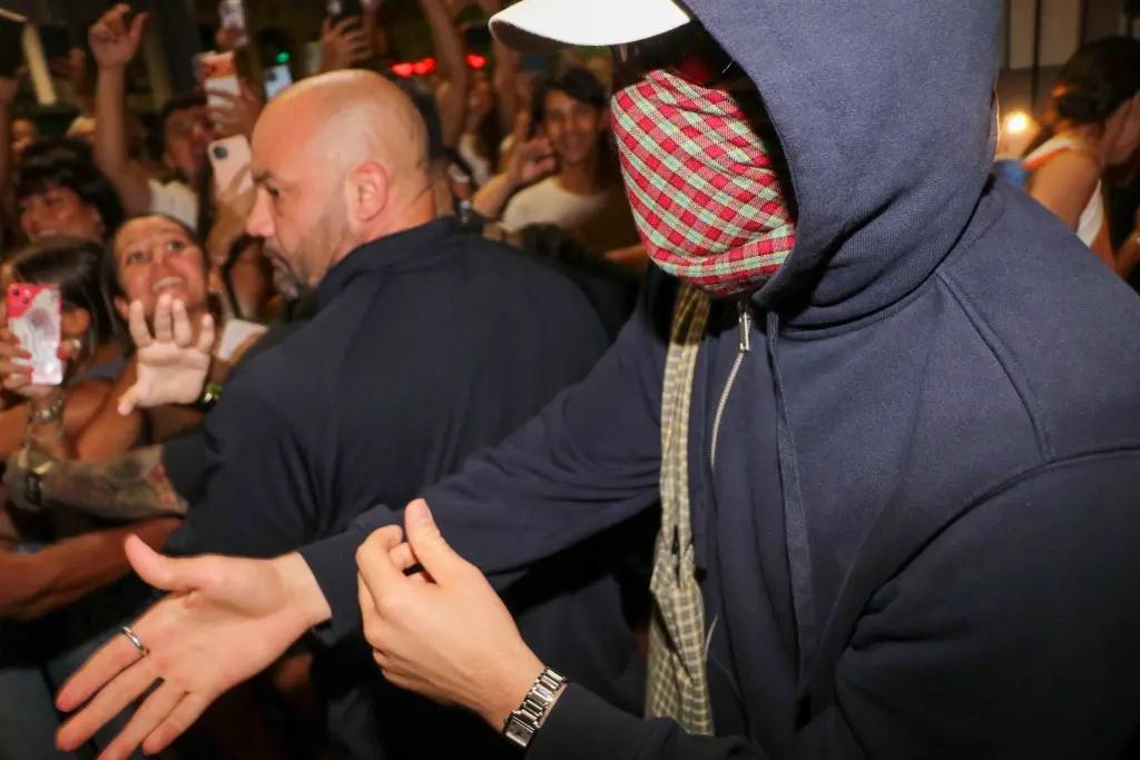 Бед Банні, чиє справжнє ім’я Беніто Антоніо Мартінес Окасіо, намагався залишатися інкогніто, виходячи з ресторану в синій толстовці, захисній масці та темних окулярах. Попри зусилля охорони захистити зірку від натовпу фанатів, співак виявив неабияку прихильність до публіки: він тиснув руки шанувальникам та навіть обійняв кількох дітей. Поки володар «Греммі» спілкувався з фанатами, 32-річна Берлінгері непомітно пройшла до машини у супроводі персоналу закладу. Для побачення вона обрала стильну коричневу шкіряну куртку та штани в тон.