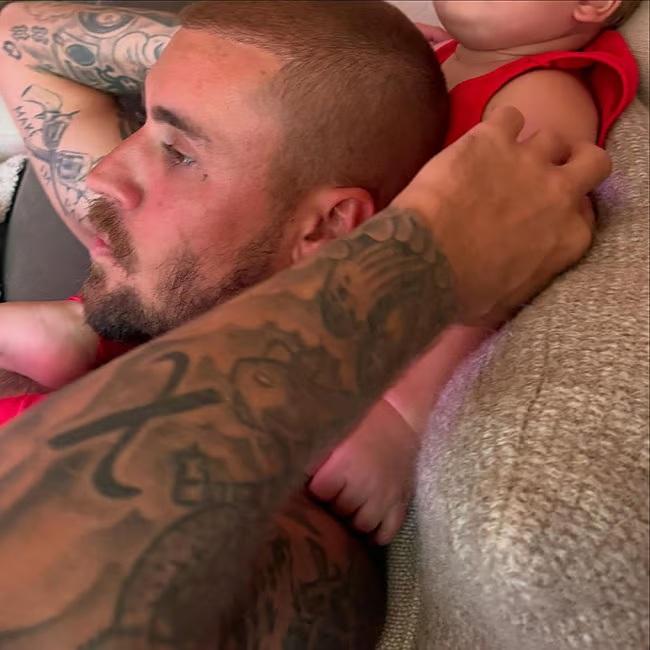 Джастін Бібер та його дружина Гейлі продовжують тішити шанувальників фотографіями свого сина Джека Блюза, якому нещодавно виповнився один рік. 18 серпня Джастін поділився серією нових знімків зі своїми 294 мільйонами підписників в Instagram. На фотографіях малюк Джек, одягнений у яскраво-червоний комбінезон, обіймає тата крихітними ніжками за шию.