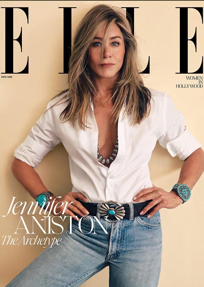 Зірка Дженніфер Еністон прикрасила обкладинку спеціального випуску Elle «Жінки в Голлівуді 2025», представивши новий образ, сповнений невимушеної вишуканості. На обкладинці зірка серіалу «Ранкове шоу» постала у білосніжній сукні-сорочці від Ralph Lauren, класичному денімі та акцентному сріблясто-бірюзовому поясі. Бірюзові браслети та вінтажне кольє додали стилю південно-західного шарму.