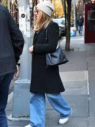 Дженніфер Еністон обрала стильне чорне зимове пальто з флісового матеріалу, поєднавши його з простими синіми джинсами та світло-сірою в'язаною шапкою. Її меліроване світле волосся було укладене під сонцезахисними окулярами. Її хлопець, Джим Кертіс, також був у зимовому пальті — сірому, яке він поєднав із чорним светром. Хоча пара продемонструвала бездоганний парний стиль, інтернет-користувачі швидко почали коментувати не лише їхній одяг, а й мову їхнього тіла, висловлюючи занепокоєння.