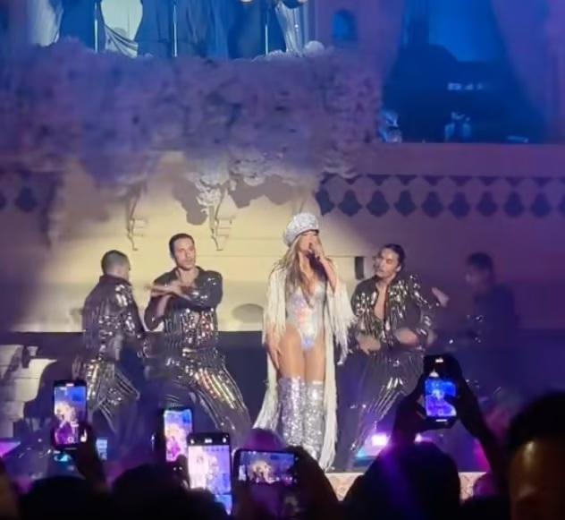 За повідомленнями, матері двох дітей заплатили колосальні два мільйони доларів за виступ на цьому екстравагантному індійському святкуванні в Удайпурі. Дженніфер Лопес влаштувала енергійне шоу в стилі концерту, виконавши такі хіти, як Get Right та Waiting for Tonight, із численними змінами костюмів.