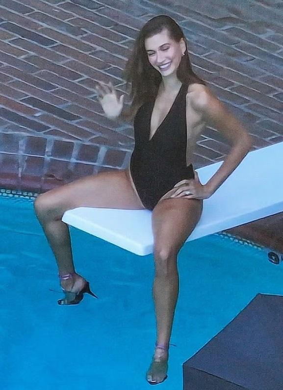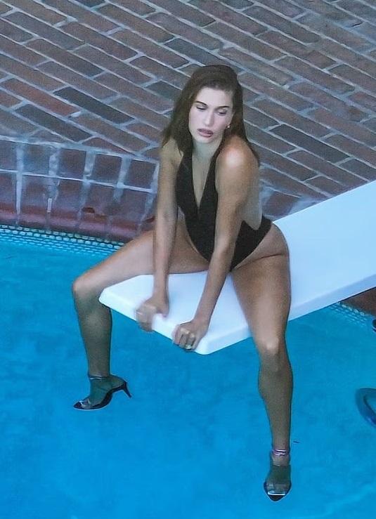 Модель і засновниця бренду Rhode Гейлі Бібер привернула увагу, знявшись у стильній фотосесії біля басейну готелю Chateau Marmont у Західному Голлівуді. Вона продемонструвала свою підтягнуту фігуру в чорному цільнокроєному купальнику з глибоким вирізом, доповненому туфлями на шпильках. Хоча мета зйомки не була підтверджена, фанати припускають, що вона пов'язана з її брендом косметики.