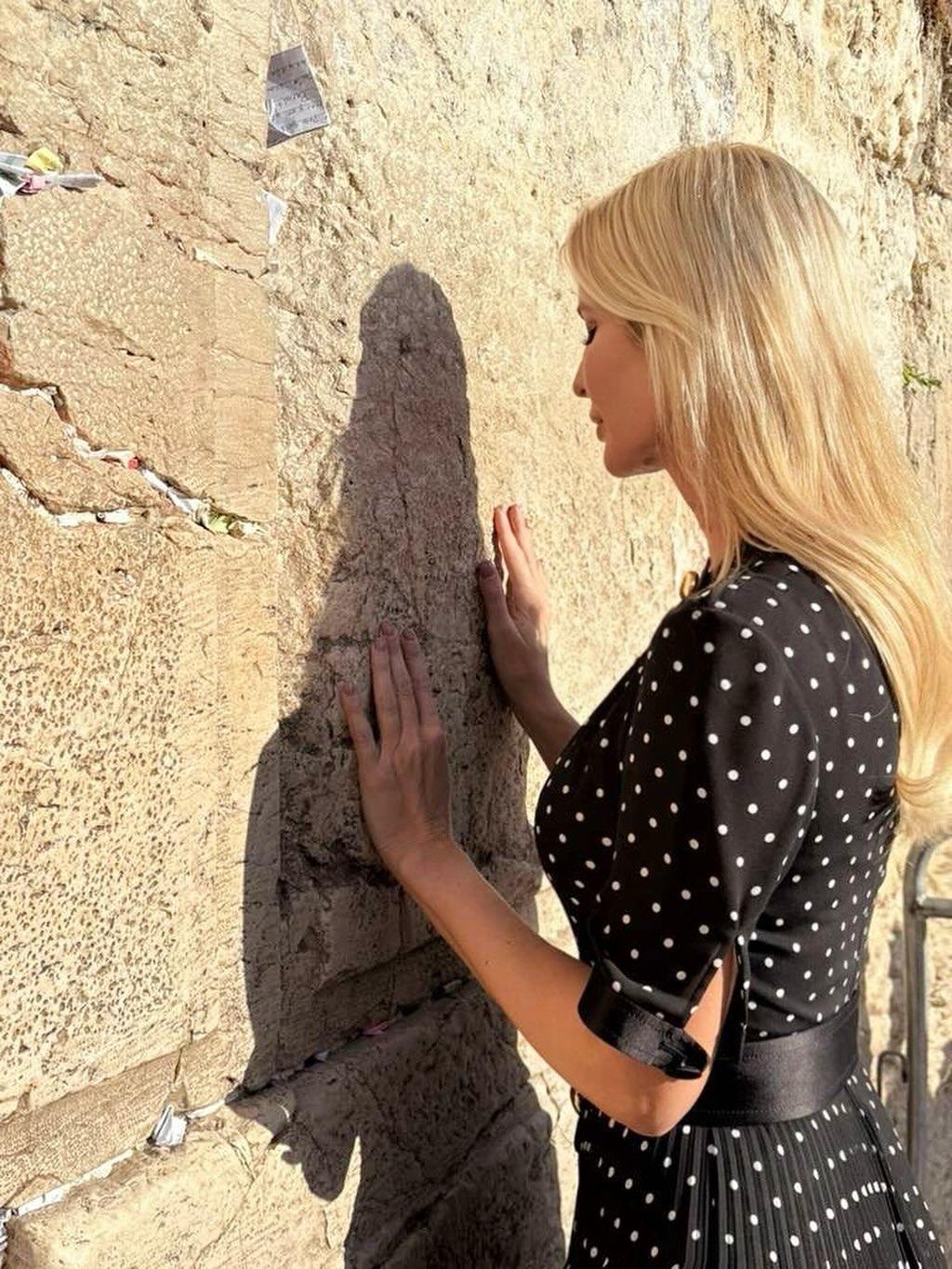 У п'ятницю, 10 жовтня, Іванку помітили біля Стіни Плачу в Єрусалимі. Для цієї події перша донька обрала стриманий образ: чорно-білу сукню в горошок з рукавами до ліктя, атласним поясом та плісованою спідницею, стоячи обличчям до святині з розпущеним світлим волоссям.