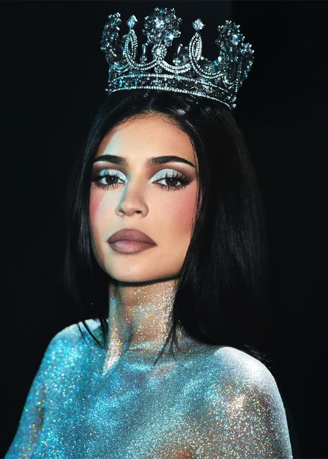 13 жовтня мати двох дітей поділилася неймовірним рекламним знімком. На ньому вона одягнена лише в мерехтливі блакитні блискітки для тіла, а голову прикрашає корона. Її темне волосся вільно спадало. Образ доповнював повний гламур: крижано-блакитна складка на повіках та коричневі губи — це чіткий натяк на естетику макіяжу, яка стала візитівкою її ранньої слави.