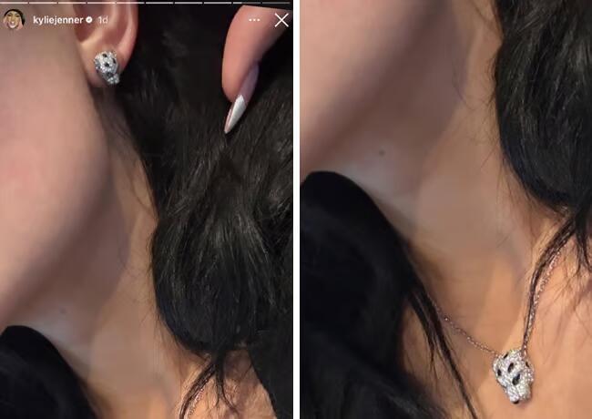 На знімку Кайлі продемонструвала нові розкішні аксесуари: сережки-цвяшки та намисто-підвіску з колекції Cartier Panthère. Прикраси, виконані у формі знакових голів пантер, інкрустовані діамантами та смарагдами. Експерти оцінили вартість цього комплекту приблизно у 60 000 доларів (сережки — близько $26 700, намисто — $30 500). Шанувальники одразу припустили, що це подарунок від Тімоті, адже актор фільму «Марті Супрем» є давнім амбасадором бренду Cartier і неодноразово з’являвся в аналогічних прикрасах на червоних доріжках.