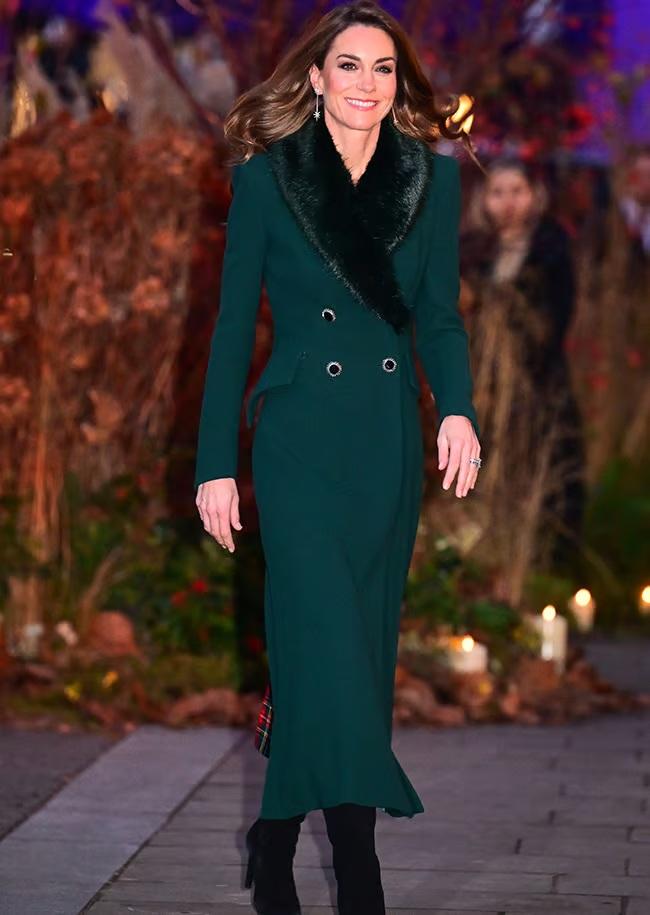 Для цьогорічного заходу принцеса Уельська обрала яскраве лісово-зелене двобортне пальто від Catherine Walker, одного з її улюблених дизайнерів. Пальто мало ефектні круглі ґудзики та було доповнене розкішним штучним хутряним коміром від Troy London.