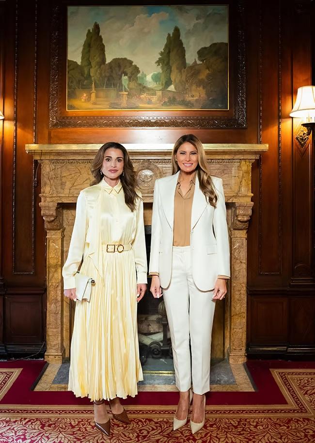 Меланія Трамп майстерно володіє мистецтвом ділового стилю, що вона продемонструвала під час прийому в Організації Об'єднаних Націй у вересні. Разом з королевою Йорданії Ранією перша леді з'явилася в елегантному білому брючному костюмі Dolce & Gabbana з бездоганним пошиттям. Вона вдало поєднала його з блузою карамельного кольору від Max Mara, створивши м'який контраст, який підкреслив її любов до нейтральних тонів та чітких силуетів. Кожен вибір Меланії 2025 року підтвердив, що вона не просто слідує трендам, а формує власний неповторний стиль, який поєднує в собі силу, елегантність та бездоганний смак, залишаючи глибокий слід у пам'яті шанувальників високої моди.