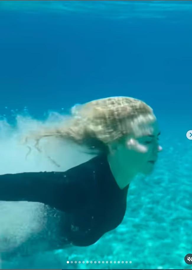 На знімках акторка, володарка премії «Оскар», демонструє свою фігуру в гідрокостюмі, пірнаючи в кришталево чисті води. Карусель також містить теплі сімейні моменти з її доньками Сандей Роуз та Фейт Маргарет, сестрою Антонією Кідман, а також фотографії заходу сонця.