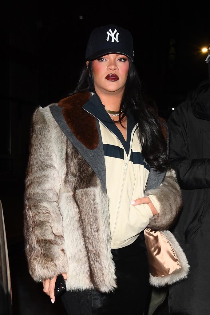 Для вечірнього виходу лауреатка «Греммі» обрала багатошаровий ансамбль, центром якого стало об'ємне біло-сіре хутряне пальто з унікальними коричневими лацканами. Під ним співачка носила бежево-синю спортивну куртку, яку несподівано доповнила довгою чорною мереживною спідницею. Образ завершували високі двоколірні замшеві чоботи та незмінний атрибут нью-йоркського стилю — темно-синя кепка Yankees. Попри те, що Ріанна завжди славилася своїм самобутнім смаком, цього разу навіть найвідданіші фанати не стримали критики. У Reddit та Instagram вбрання назвали «безглуздим», а деякі користувачі навіть закликали звільнити стиліста зірки.