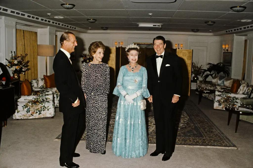 Ненсі Рейган також не уникла гострого язика монархині. Єлизавету II помітили за пародіюванням фірмового «захопленого погляду», яким дружина Рональда Рейгана завжди дивилася на свого чоловіка. Попри ці залаштункові пустощі, королева підтримувала з Рейганами напрочуд теплі стосунки, що базувалися на спільній пристрасті до верхової їзди. Вона була настільки зворушена гостинністю пари, що під час візиту до США 1983 року навіть погодилася на вечерю в ресторані Trader Vic's — вперше за 17 років свого правління.